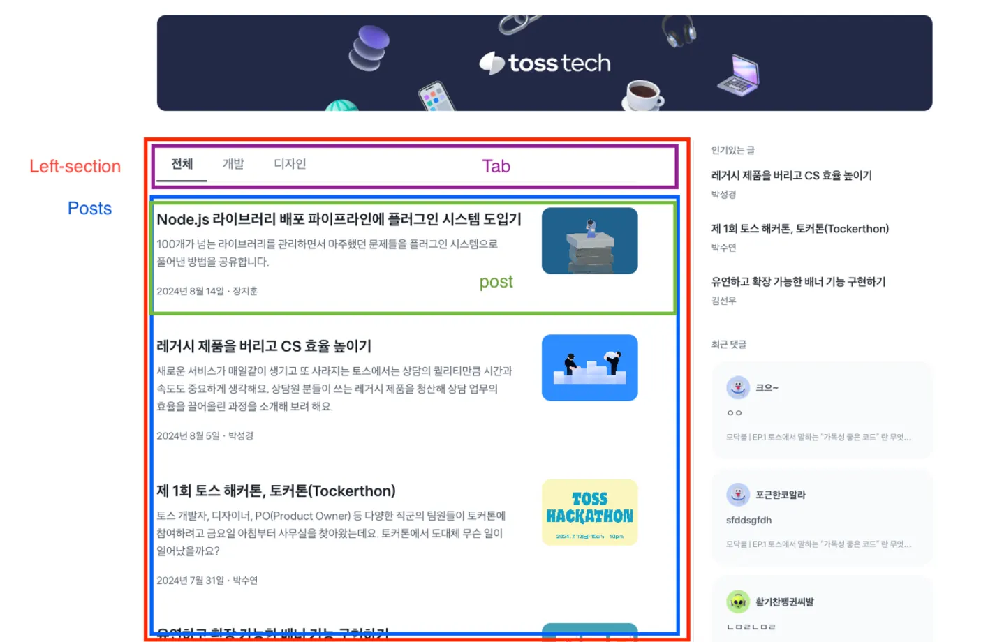 페이지마다 게시물의 스타일이 다를 수도 있으니, main-post , detail-post등으로 나누어 클래스 네이밍을 해주는 게 적절해 보인다.