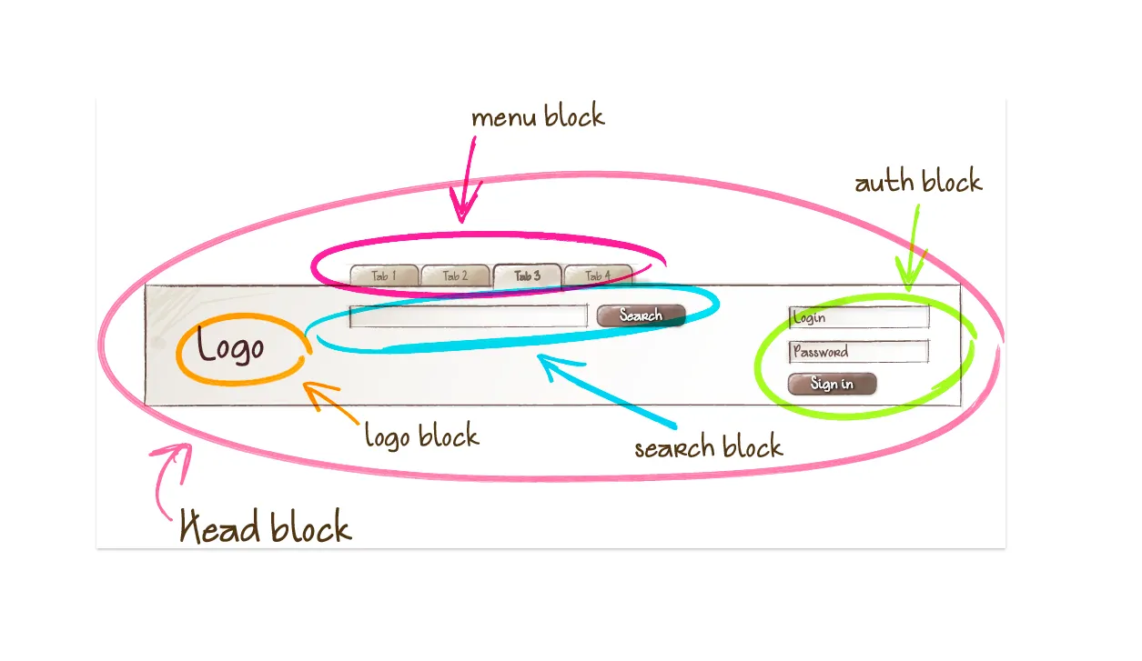 Block: 사용 가능한 기능적으로 독립적인 페이지 컴포넌트를 블럭으로 지정한다.